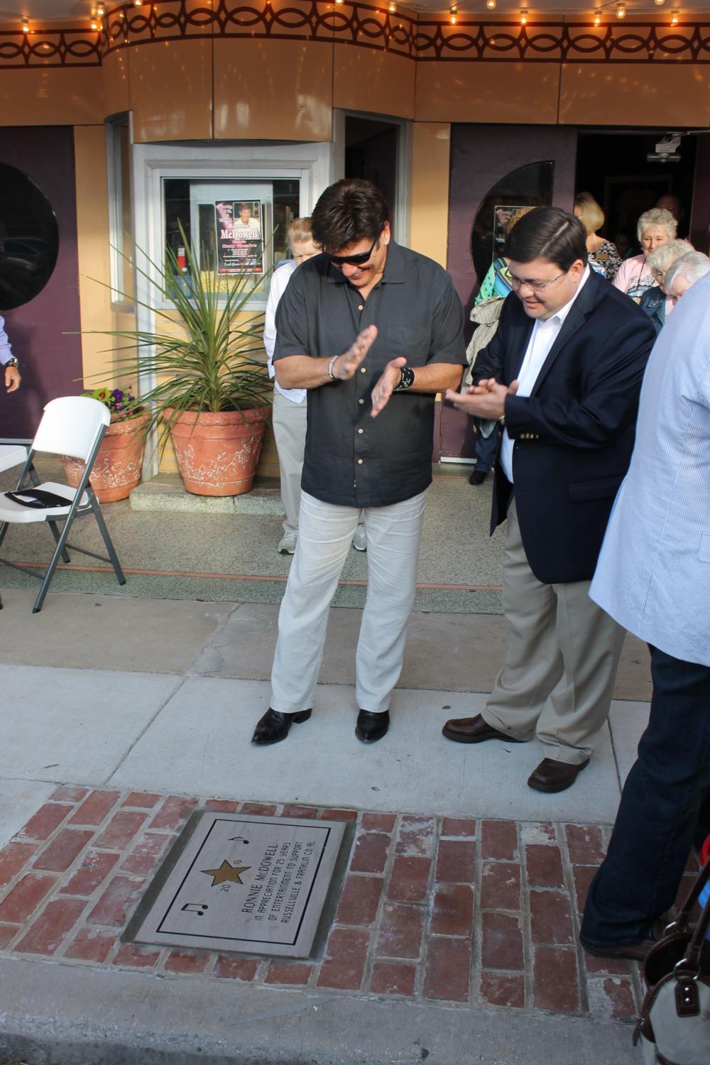 “This is one of the coolest things I’ve ever gotten and I appreciate it so much,” McDowell told Russellville Mayor David Grissom of his star. Made by Atkins Marble & Granite in Russellville, the marble square commemorates McDowell’s 25 years of concerts in Russellville and his support to the community.
