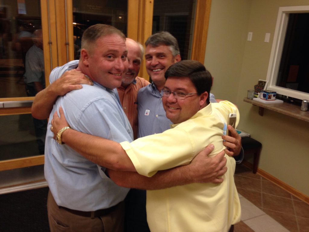 If you’ve never seen grown men group hug, you weren’t at Russellville City Hall on election night.